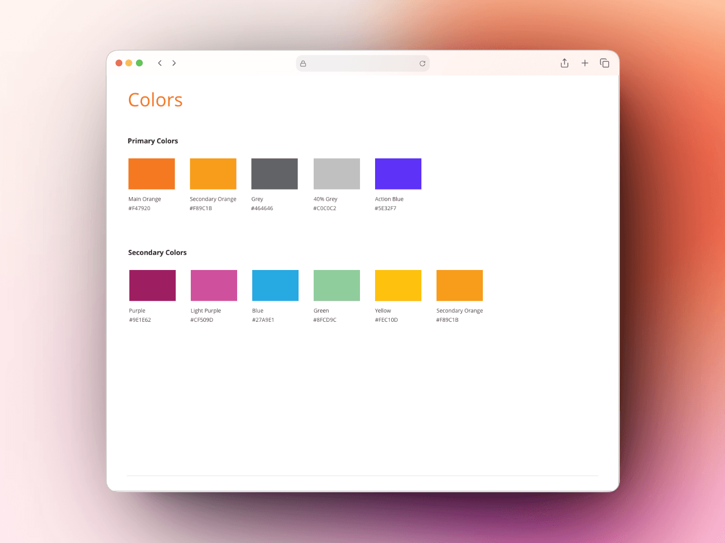 Secondary colors were undefined for digital use