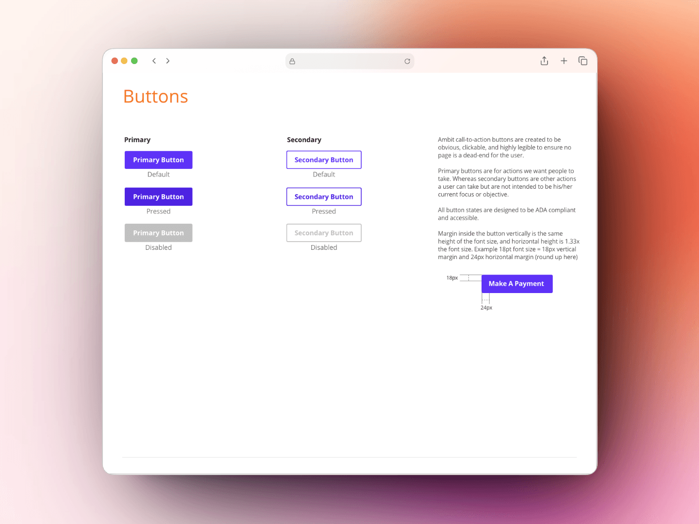 I created a comprehensive digital style guide to serve as the single source of truth for Ambit’s online products.