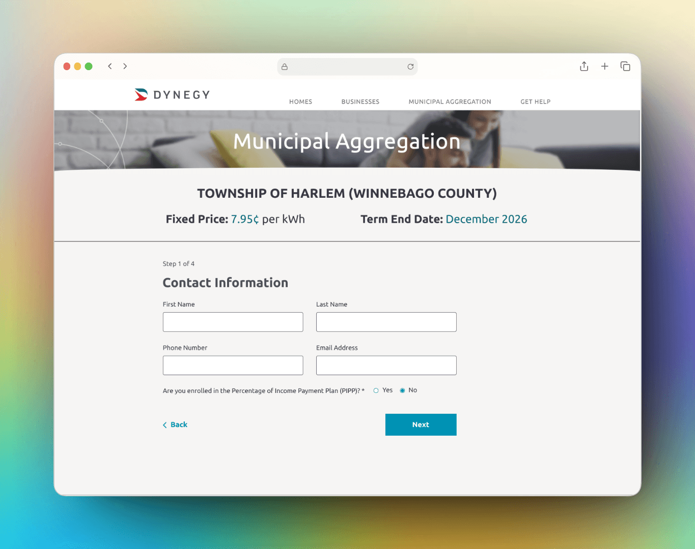 We designed a four-step, mobile-friendly enrollment portal that aligned with Dynegy’s brand while prioritizing speed and clarity.